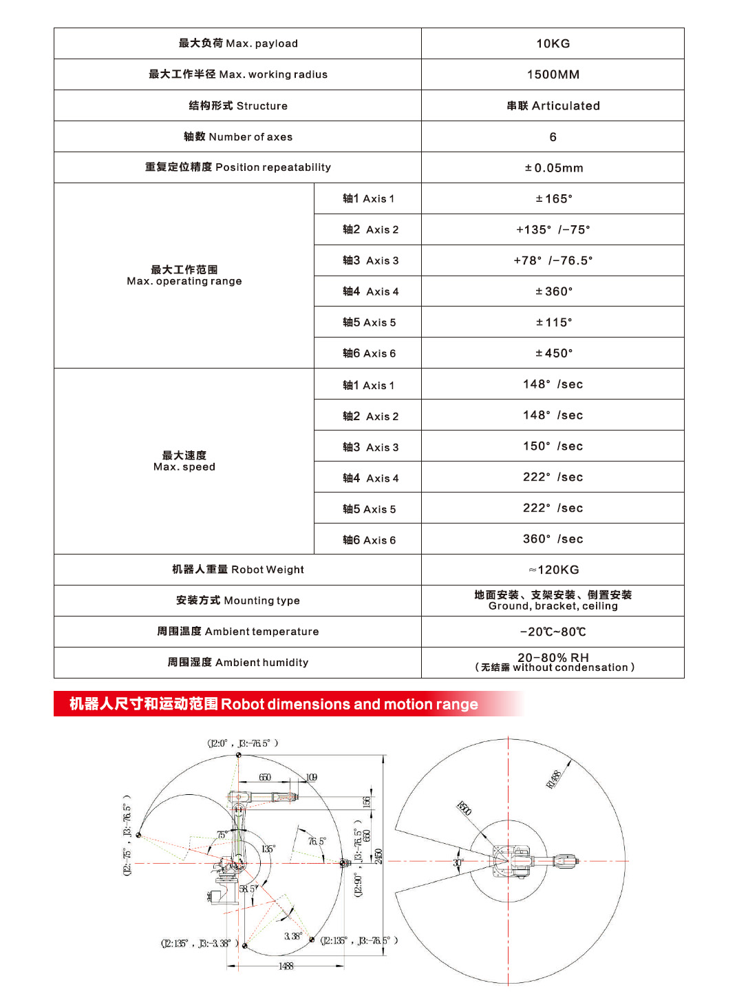 The articulated robot is used for Materials handling, transmission parts, welding, machine management, palletizing, packing, inspection, deburring, grinding, coating, assembling, and spraying.